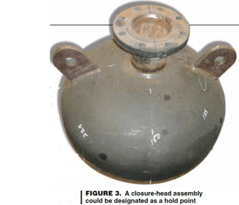 For smaller vessels with small inspection nozzles, it is not uncommon for the AI to place a hold point on the closure head of the vessel (Figure 3). This gives the inspector the ability to inspect the inside of the vessel while it is more accessible.